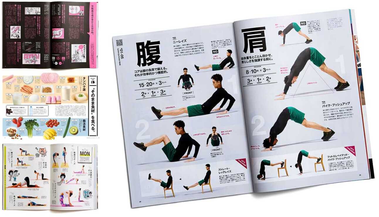 One of Tarzan’s distinguishing characteristics is its sleek design. Some months, the cover is a stylish, toned guy in the gym. Other months, it’s a modern illustration, and another month, it might be a young woman making healthy food. With its eye-catching design and comprehensive content, the magazine has mastered a mix of playful illustrations, topical anime tie-ins and stylish fashion editorials and gear reviews. Tarzan’s bold layouts, vibrant photography, and clear infographics make complex fitness concepts accessible and engaging. Regular features include visually striking “How-To” guides that break down exercises step-by-step, helping readers perfect their form.