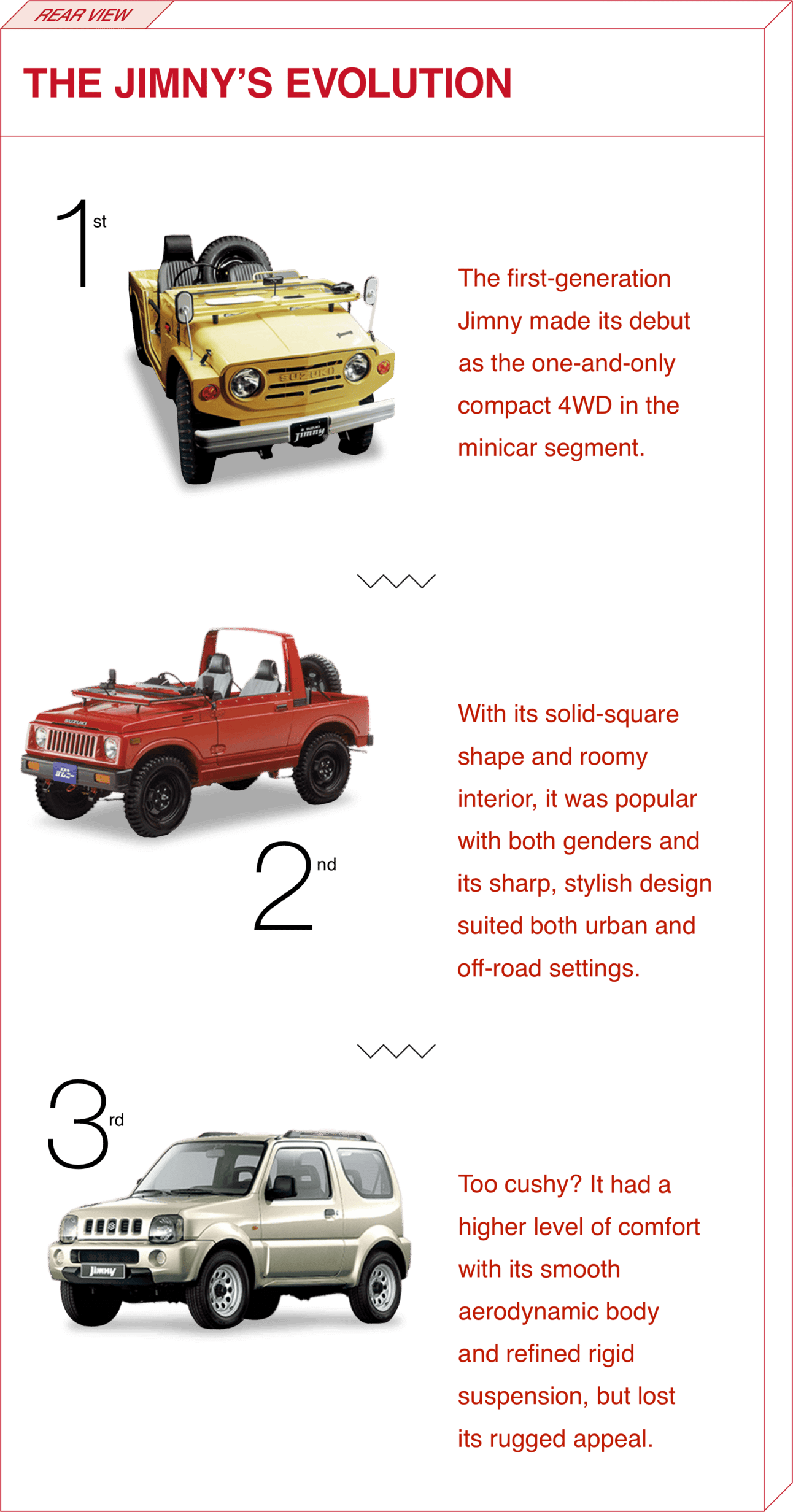 Debuting in 1970 as the LJ10—the pint-sized, soft-top 4x4 had just three seats (the spare tire claimed the other back seat spot). Under the hood was a tiny 359cc two-cylinder engine. On paper, it didn’t sound like much. But in practice, the Suzuki’s compact body and nimble chassis could take it places larger 4x4s couldn’t go. It’s nimble agility made it a surprisingly capable and popular off-roader, so soon followed up with hard-top and pickup versions, bumping up engine sizes and building a reputation as a rugged little workhorse across Australia, Africa, the Middle East and South America. By the '80s, it evolved into the SJ (better known in the U.S. as the Samurai), and by 1998, the JB generation added more refinement without losing its original grit.