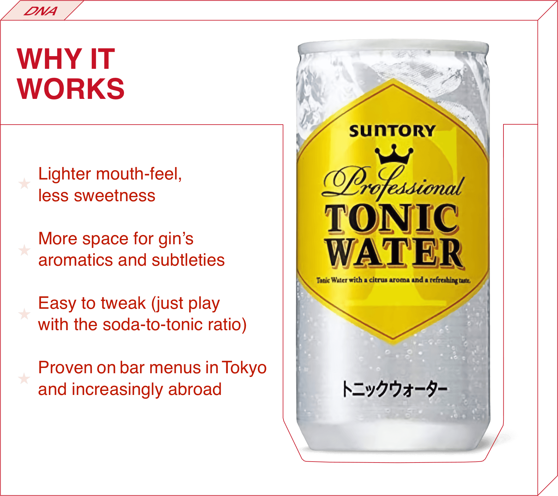 But there was a problem: Up until the mid-’90s, Japan had banned quinine—a natural compound from the bark of the cinchona tree that is the defining ingredient that gives tonic water its bitter bite. Thanks to that ban, most Japanese tonics were (and still are) just fizzy, sweetened water. Mix that with your gin and you end up muting every herbaceous nuance of the spirit.