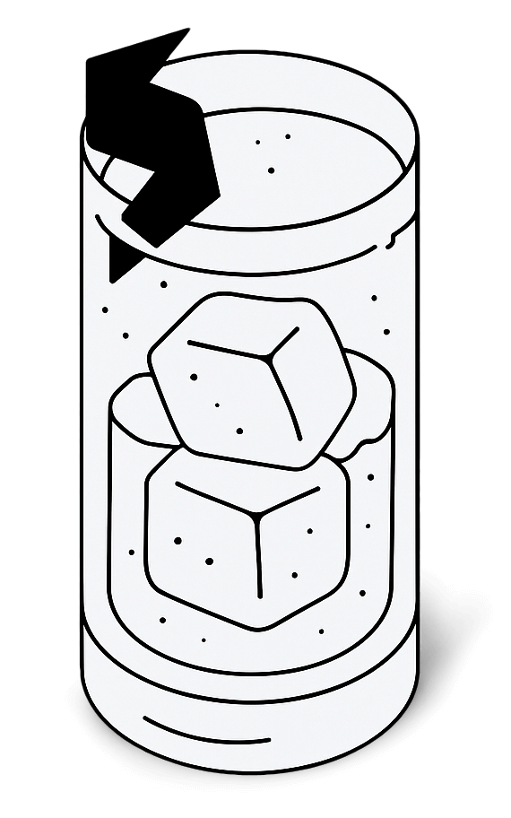 » Fill a tall Collins or highball glass with plenty of clear, cold ice